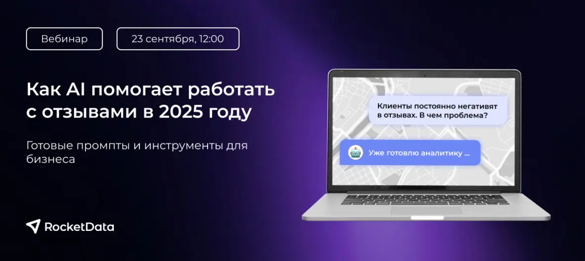 Каждый отзыв может укрепить или разрушить доверие клиентов. Приходите на бесплатный вебинар RocketData, где мы расскажем, как с помощью ИИ-инструментов быстрее работать с отзывами и вовремя замечать проблемы в бизнесе.