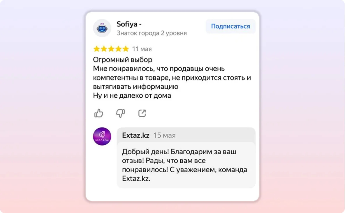 Команда Extaz.kz отмечает, что за годы работы научилась определять степень открытости покупателя ещё до покупки. Главная задача продавцов — выстроить доверие: если удаётся наладить контакт с open-minded клиентом, отзыв получить несложно.