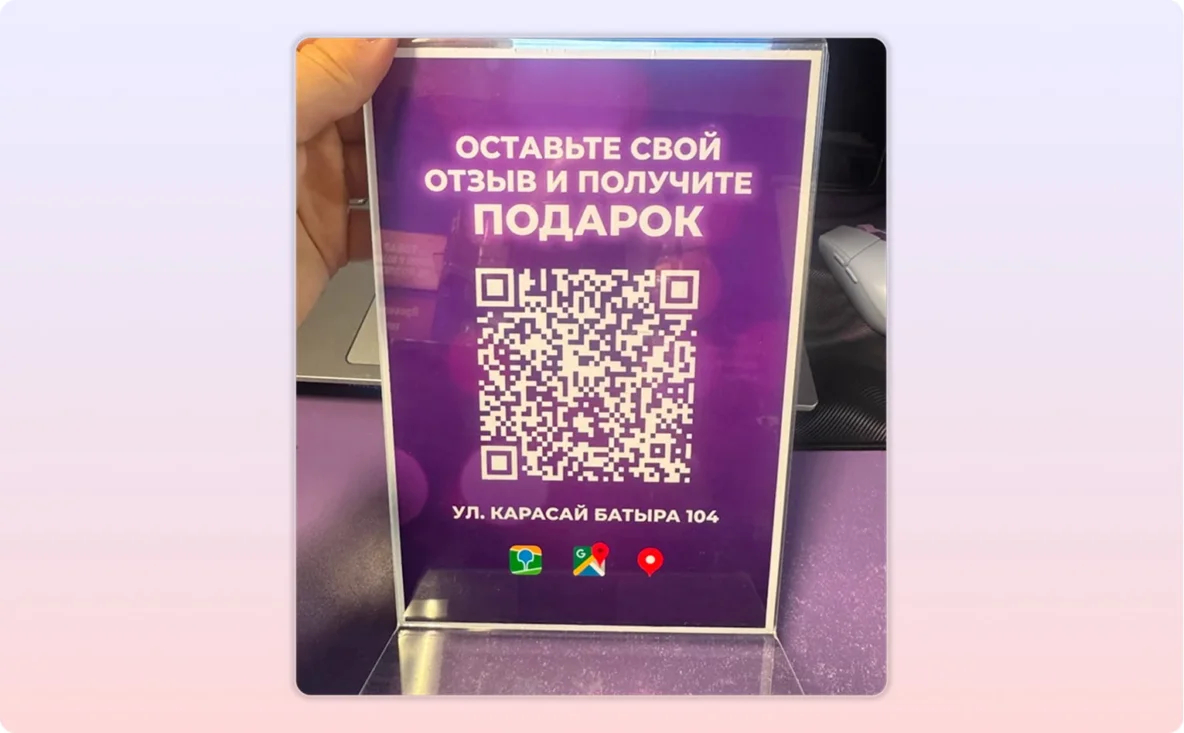 Чтобы упростить сбор обратной связи, в офлайн-магазинах на кассах разместили QR-коды, созданные через инструмент «Генератор отзывов» в RocketData. Положительные отзывы сразу публикуются на выбранной платформе, а отрицательные попадают в личный кабинет для обработки. В знак благодарности за отзыв клиентам интим-шопов дарят небольшой подарок из ассортимента.
