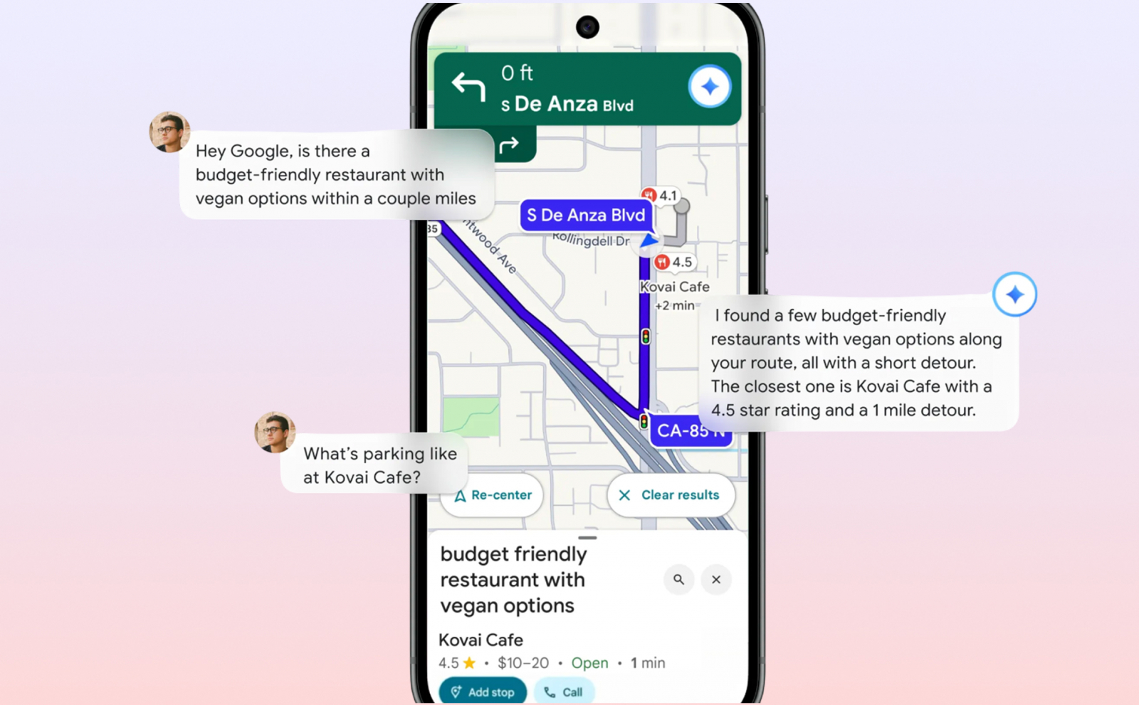 Gemini анализирует данные карт, подбирает подходящие места, объясняет выбор и сразу ведет в карточку. Фактически это голосовой помощник внутри навигатора, который заменяет ручной поиск по карте.