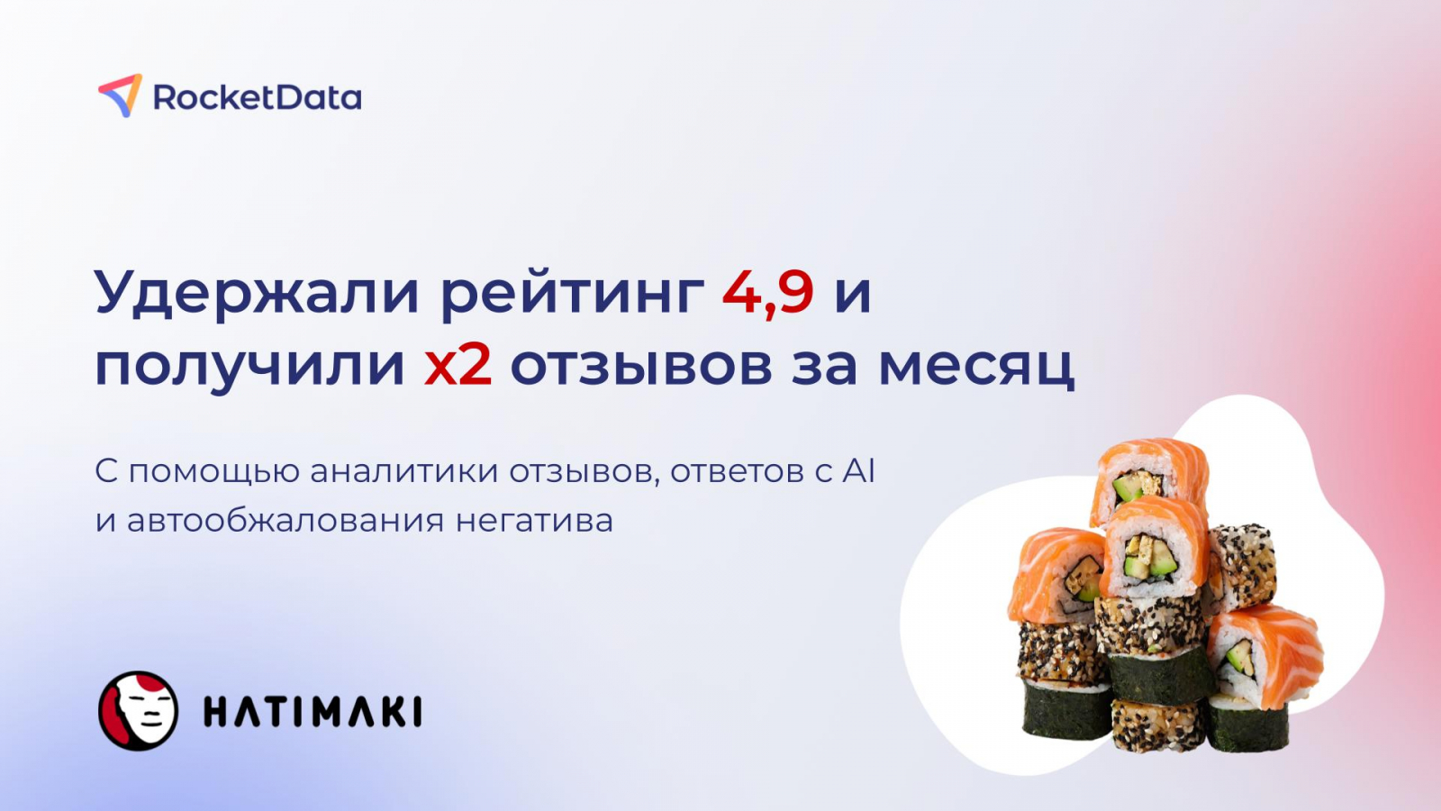 Почему проще удалить один негативный отзыв, чем пытаться перекрыть его позитивом и как сократить время сотрудников на обработку обратной связи в разы — читайте в кейсе Hatimaki и RocketData.
