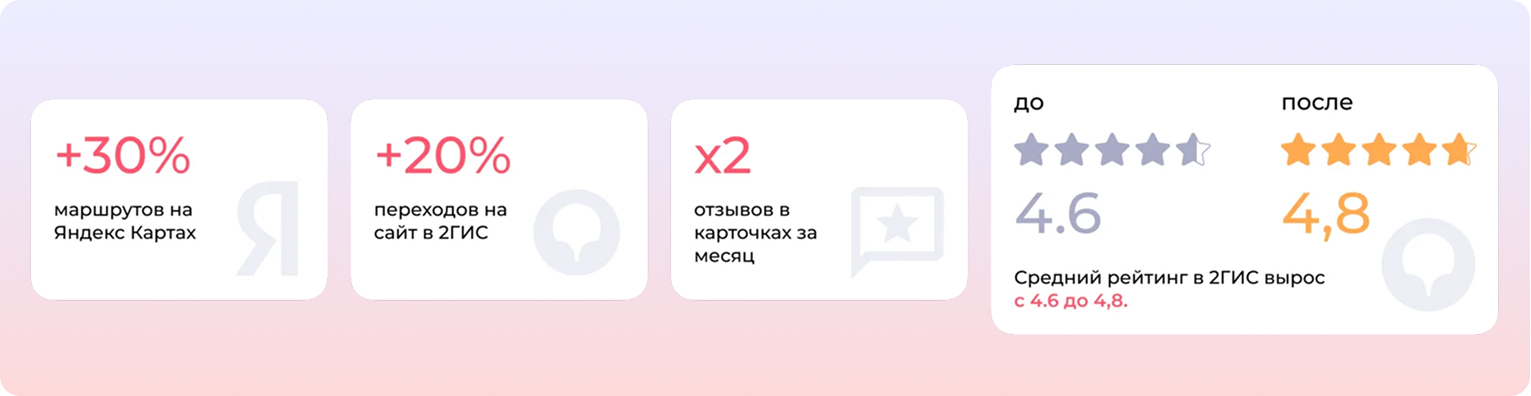 Такой подход позитивно повлиял и на рейтинг локаций — на Яндекс Картах он сохранился на высоком уровне — 4,9 — а в 2ГИС вырос на 0,2 пункта — с 4,6 до 4,8.
