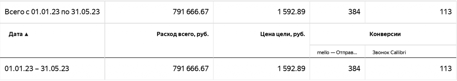 Получили неплохие результаты — 497 лидов по 1 592 рубля.