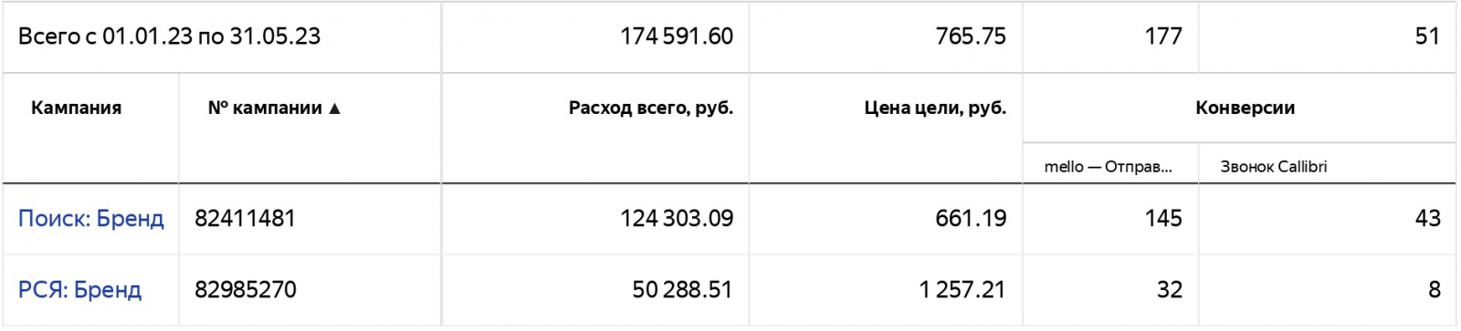 Отдельно отметили, что оффлайн-реклама сработала на «ура», т. к. конверсии с брендовых запросов лились по смешной цене в 800 рублей.