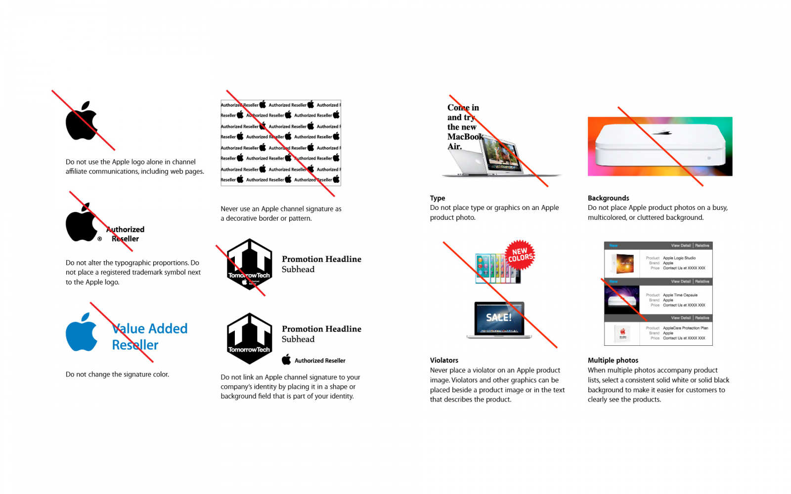 У компании Apple брендбук отражает её философию инноваций и стремление к совершенству в дизайне, через то, что в нём содержатся строгие правила использования логотипа, шрифтов, цветовой палитры и изображений. Apple уделяет внимание каждой детали, чтобы создать образ бренда, который будет узнаваем даже через 20 лет.