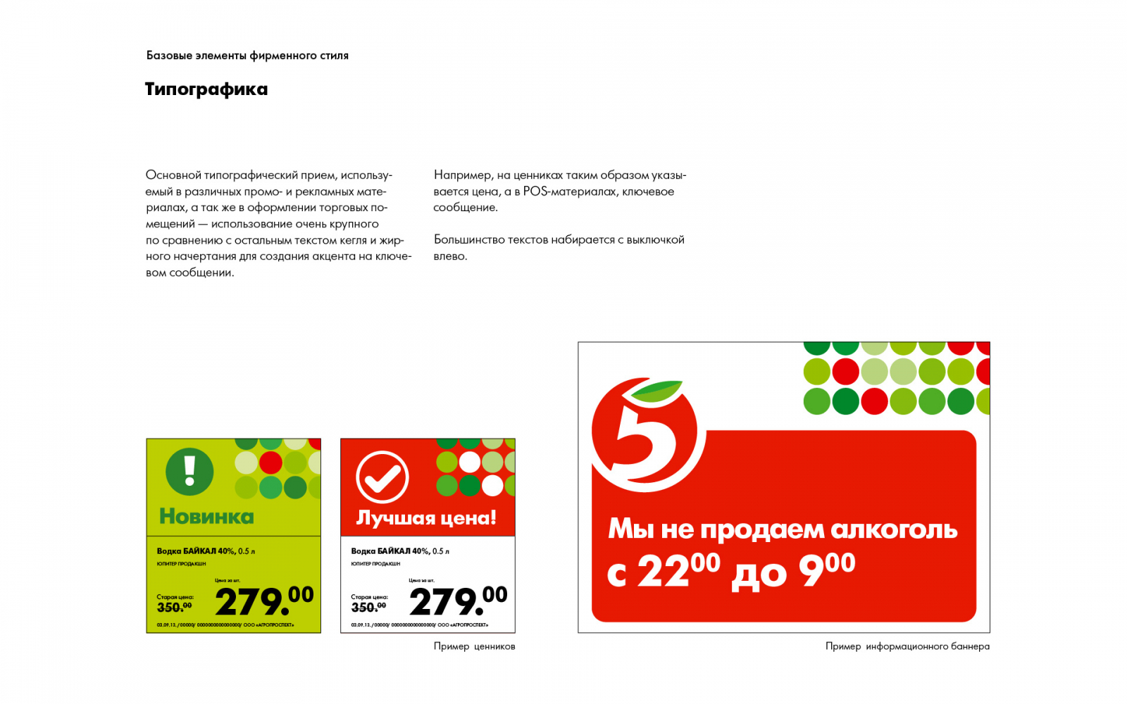 Брендбук «Пятёрочки» демонстрирует консервативность и надежность в подходе к своим услугам. Это позволяет бренду сохранять доверие аудитории, выделяться на рынке и повышать лояльность аудитории.