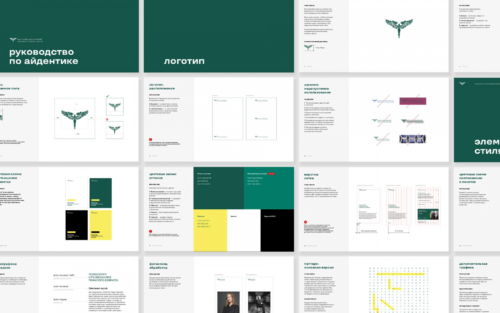 Этот брендбук не только служит инструментом визуальной идентификации, но и отражает философию и ценности института, совмещая современные технологии обучения с традиционными канонами.