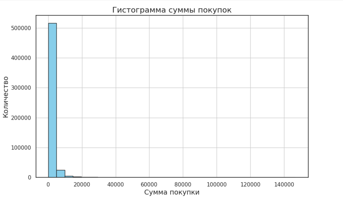 На гистограмме редкие значения, сильно удалённые вправо или влево от основной массы, могут считаться выбросами. Для точного анализа выбросов можно дополнить гистограмму статистическими методами, например, определение межквартильных размахов (IQR).