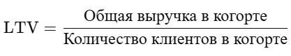 LTV можно считать разными способами, в зависимости от специфики бизнеса. Мы будем использовать следующую формулу: