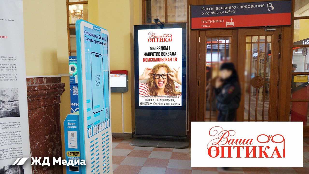 В январе запустили рекламу сети «Ваша Оптика» на железнодорожном вокзале Волгограда.