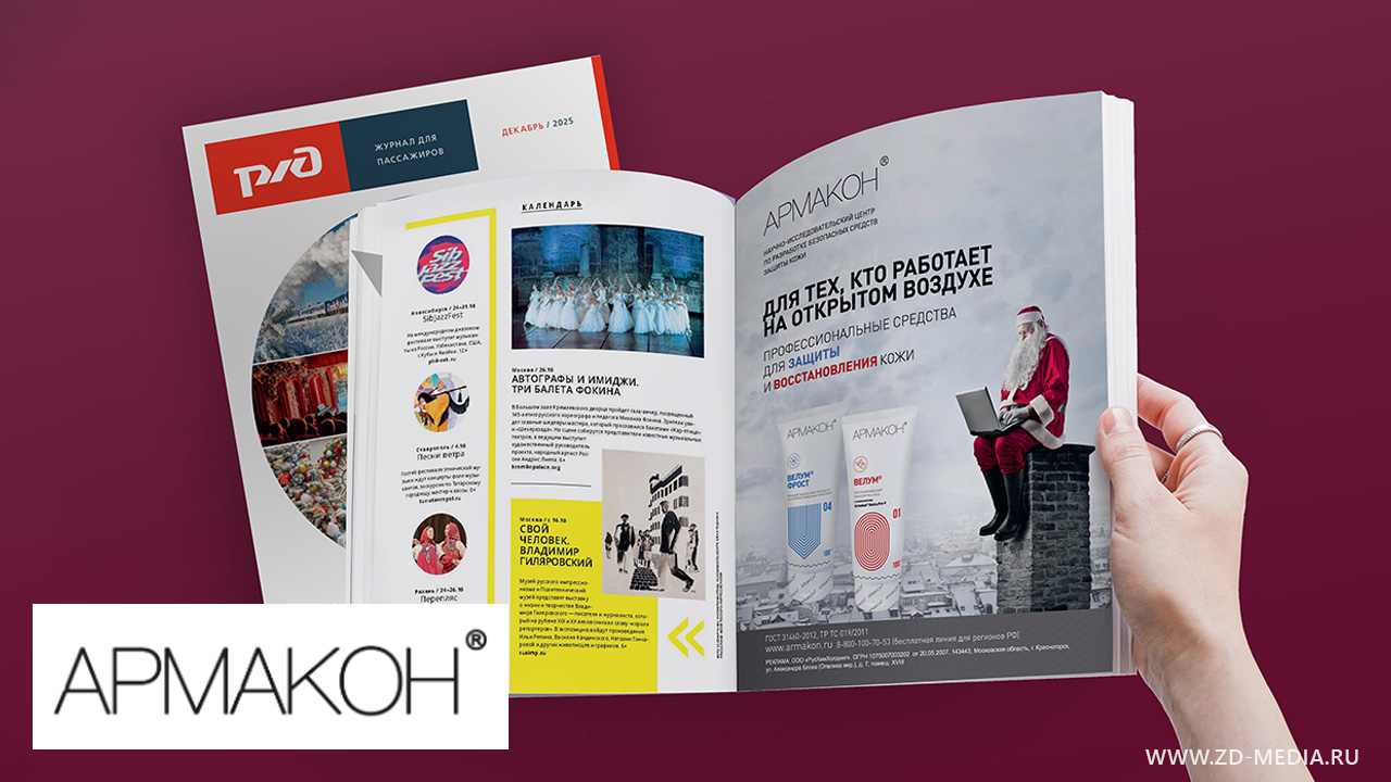 В декабре состоялось размещение рекламы производителя профессиональных косметических средств «Армакон» в бортовом журнале «РЖД».