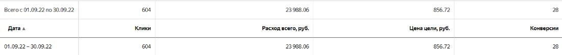 Тогда мы решили объединить в одну РК задвижки как больших, так и малых диаметров. Это позволило нам повысить бюджет на РК, а искусственному интеллекту получать больше данных для поиска наиболее подходящей аудитории. В результате несложных действий нам удалось существенно снизить цену лида с 7500 до 850 р, а также увеличить количество обращений с 9 до 28.