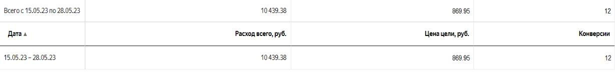 Чтобы привести его “в чувство”, мы решили сбросить стратегию: на пару часиков перевели РК со стратегии “Оптимизация конверсий” на стратегию “Оптимизация кликов”. Затем вернулись к старым настройкам. Это сработало. За 2 недели с 15 по 28 мая мы уже получили 12 лидов по 870 р.