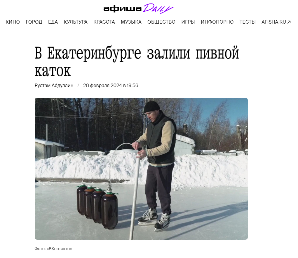 Мы подумали: на Урале холодно примерно 5 месяцев в году, а в лёд превращается практически любой водоём. Поэтому катков много, и они весьма востребованы. А почему бы не совместить приятное с полезным и не залить каток из пива?