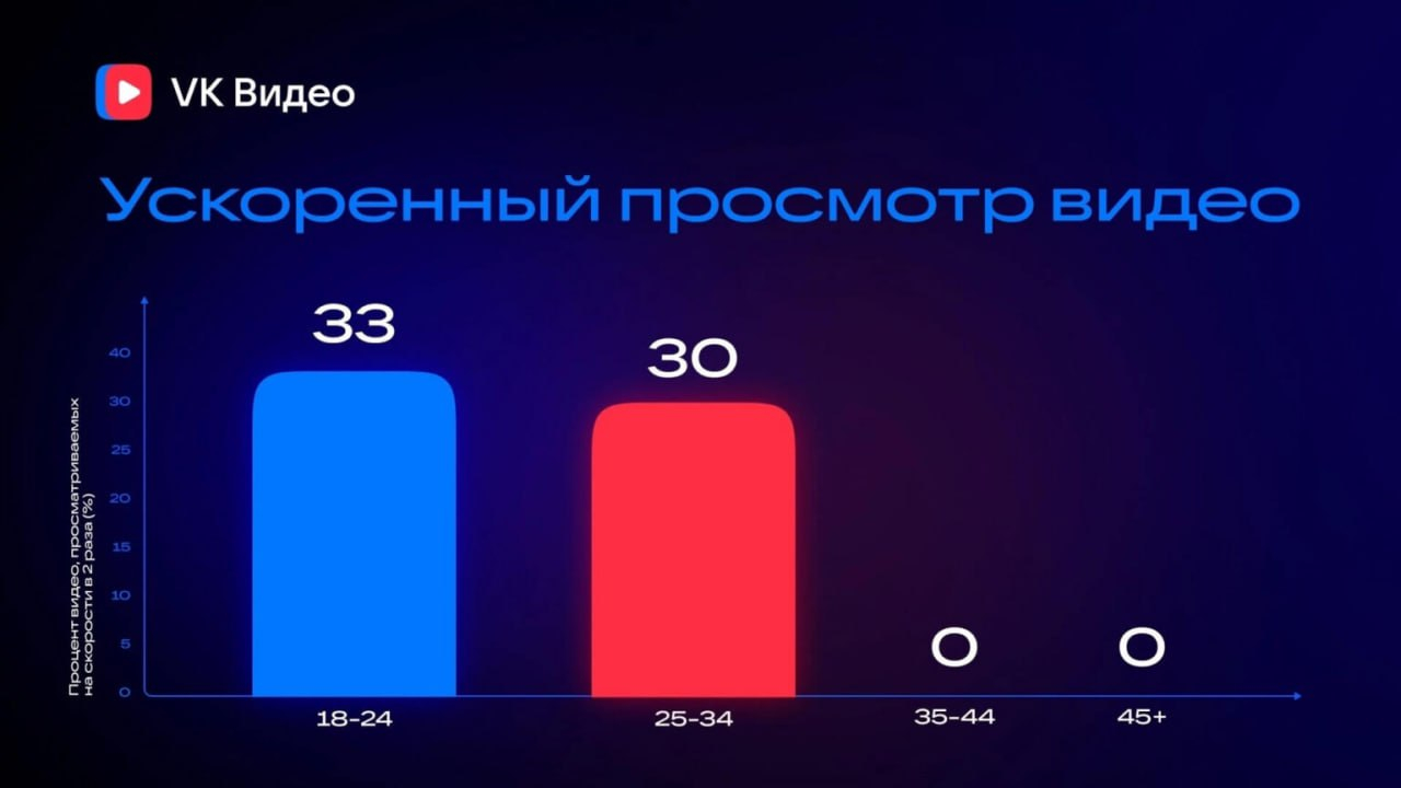 🔵 Зумеры к примеру активно используют возможность ускоренного просмотра видео. Каждый третий пользователь в возрасте от 18 до 24 лет смотрит ролики на скорости 2x.