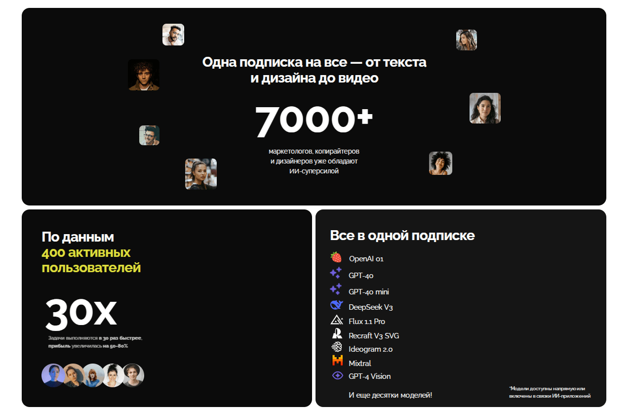 В первую очередь мы хотели показать, что с одной подпиской бизнес и фрилансеры могут использовать десятки нейросетей и инструментов без необходимости разбираться в промптинге. И спойлер — это у нас с дизайнерами получилось без косяков и долгих согласований.