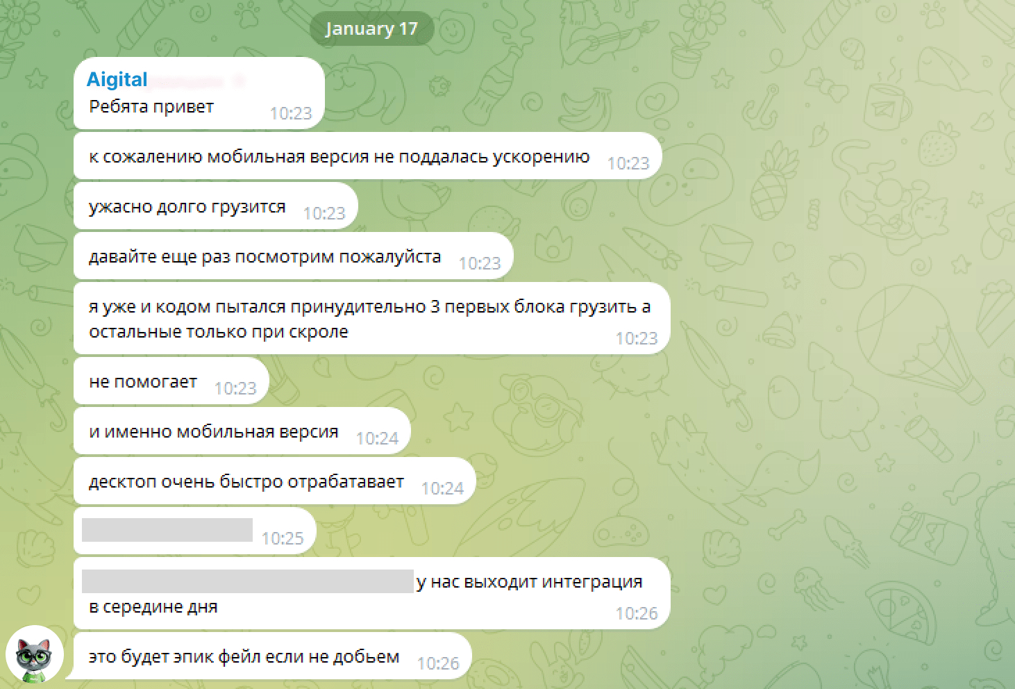 Все 4 дня до интеграции часть команды и дизайнеры постоянно проверяли скорость работы и искали решение.
