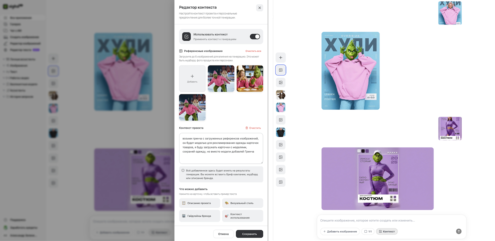 Да, это уже доступно в Nano Banana Pro, мы просто переняли эту механику. Но не все и не всегда просто объяснить текстом. Иногда нам в коммуникации друг с другом куда проще обвести объект на картинке, и буквально пальцем показать «вот это давай вот сюда, а вот это вон туда». И поэтому мы решили сделать режим канваса внутри чата. Например, в полученном от нейронки изображении вы хотите заменить один объект на другой, и одеть модель в другой наряд или добавить новый источник света. Тогда заходим в канвас, накидываем референсов на холст и рисуем взаимосвязи между ними. Так, шанс быть непонятым нейронкой близится к нулю, потому что вы показали все на пальцах.