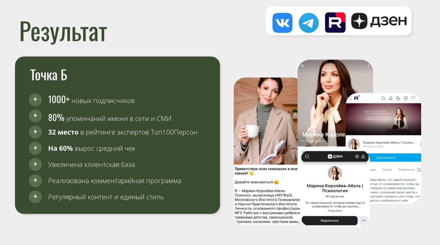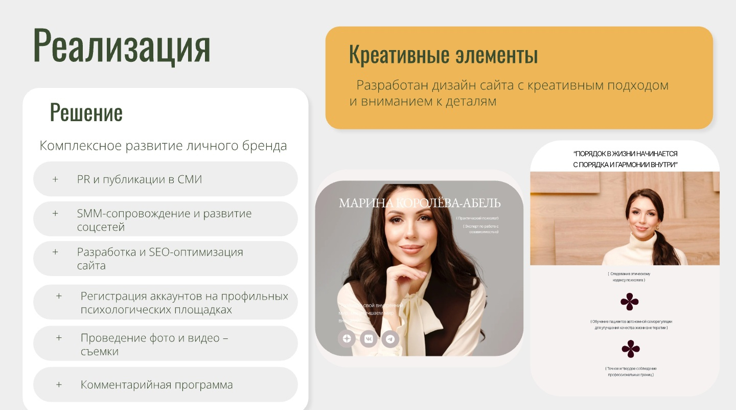Системная работа над личным брендом Марины была выстроена в несколько ключевых этапов.