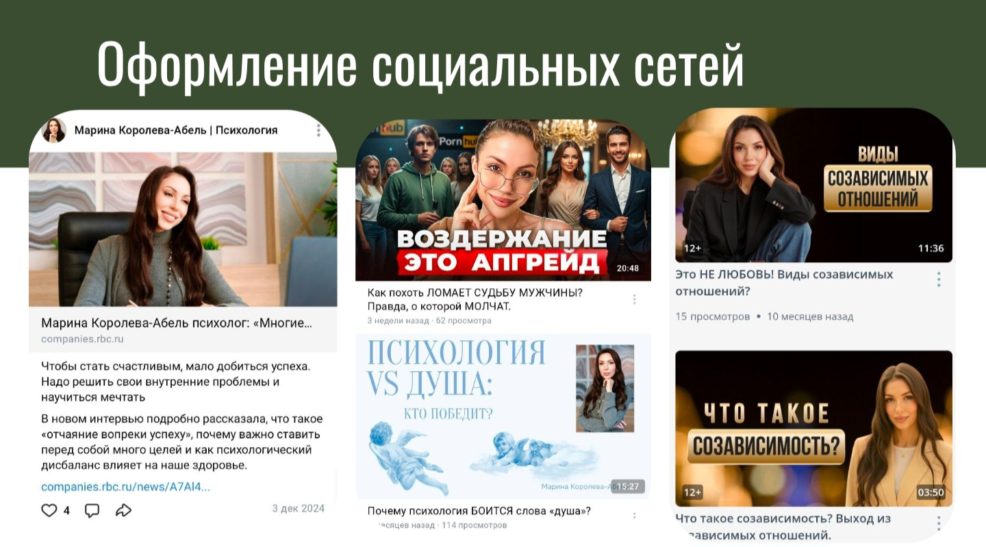 Кейс Марины Королевой-Абель наглядно демонстрирует, что успешный личный бренд в чувствительной нише строится на продуманной системе, где стратегия, цифровая инфраструктура и системные медиакоммуникации синхронизированы для одной цели — трансформации личного опыта и экспертизы в ценный, узнаваемый и доверительный актив, который стабильно привлекает клиентов.