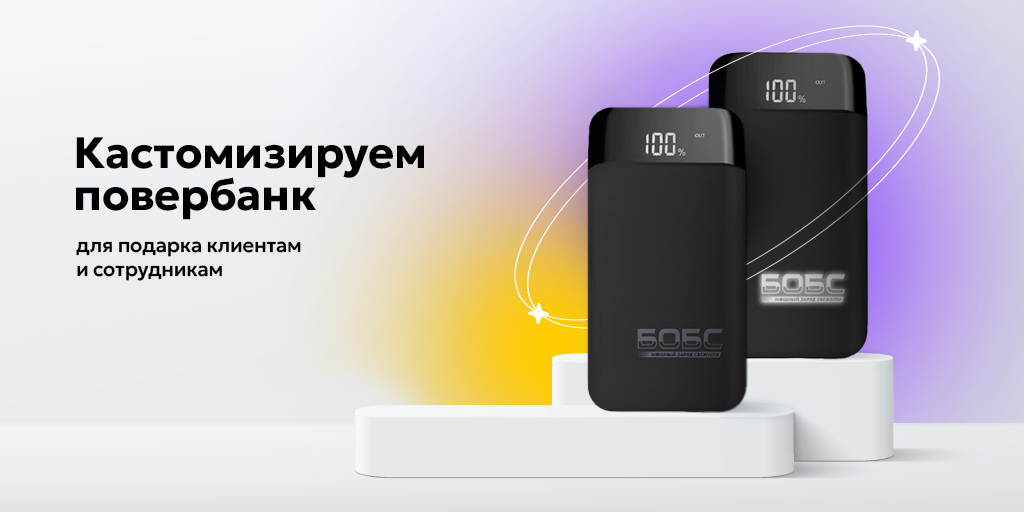 Подготовить макет и изготовить повербанки с логотипом компании-заказчика.