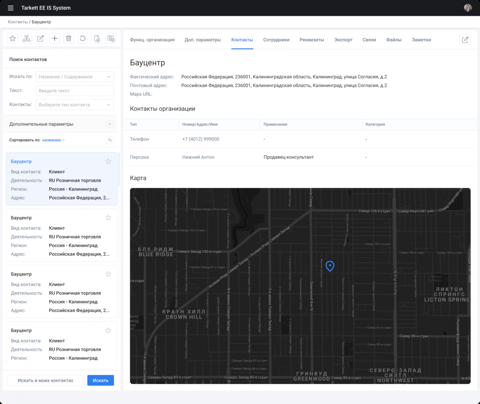 Отрисовали раздел контактов сделан таким образом, что пользователь может по заданным фильтрам найти нужную группу клиентов и ознакомиться со всей информацией, переключаясь между табами.