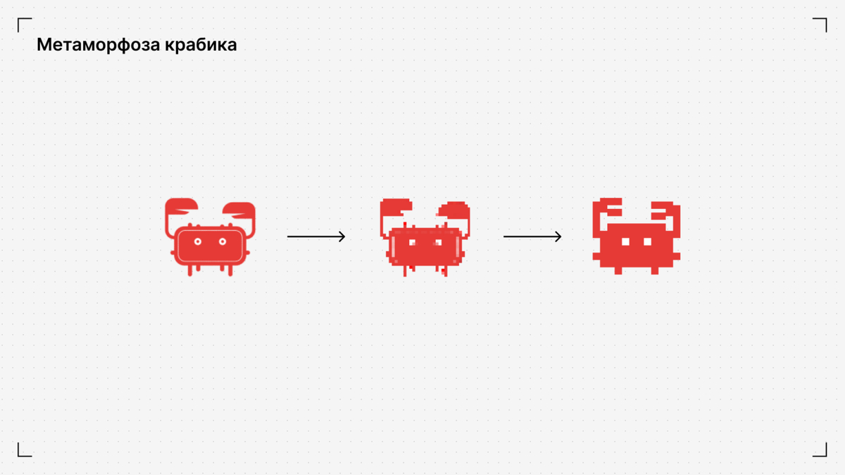 Поэтому дизайнер унифицирует все заранее. Для крупных проектов мы разрабатываем уже дизайн-систему.В рамках концепции разрабатываем еще и логотип, если его нет. Бывает, что старый вариант просто не вписывается в новый дизайн — тогда предлагаем «быстролого», который точно передает характер бизнеса. Пример такого лого можно посмотреть в кейсе Crabbit.