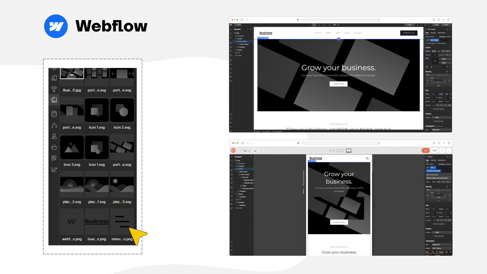 Что важно, у Webflow лучше оптимизация и производительность, поэтому он подходит для более сложных проектов, чем сайты на Тильде. У Вебфлоу мало шаблонов, но это нивелируется возможностью мощной кастомизации с помощью своих визуальных редакторов кода.