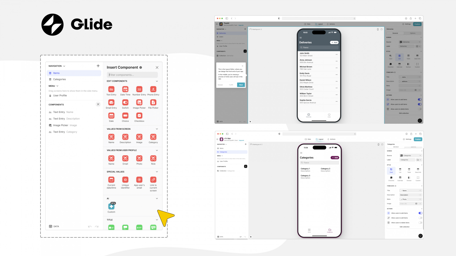 3. Glide (для no code приложения под iOS и Android)