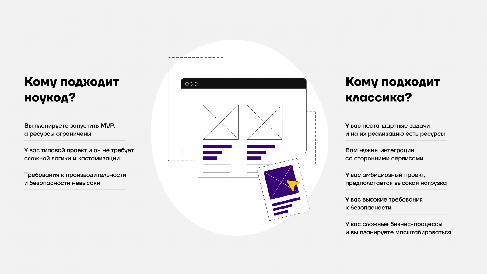 Если ваш проект амбициозный и вы заранее знаете, что с большей долей вероятности он будет востребован, нужны только умелые руки, а в будущем планируете масштабироваться, то выбирайте традиционную разработку.