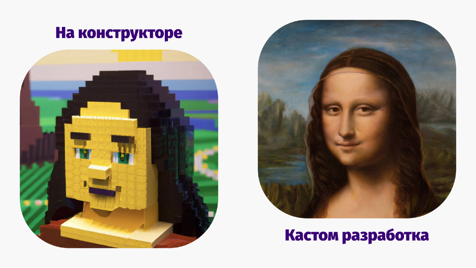 В отличие от конструктора, кастомная разработка позволяет масштабироваться и превращать MVP в полноценный продукт.