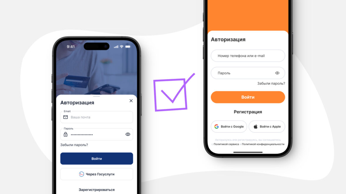 Ошибка 4. Слишком строгие требования при входе. Многие приложения позволяют войти в аккаунт только по номеру телефона, но такой подход создает ненужные барьеры. Пользователи привыкли к выбору, им может быть удобнее авторизоваться с помощью ВКонтакте, Google или Apple ID, как на примере ниже. Лояльность пользователей повысится, а общее впечатление от взаимодействия станет лучше.