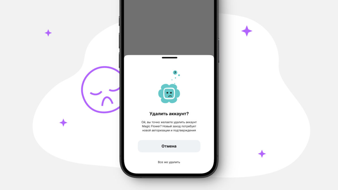 Ошибка 8. Приложения не предупреждают о важных действиях. Например, что при удалении аккаунта все данные о заказах пропадут.