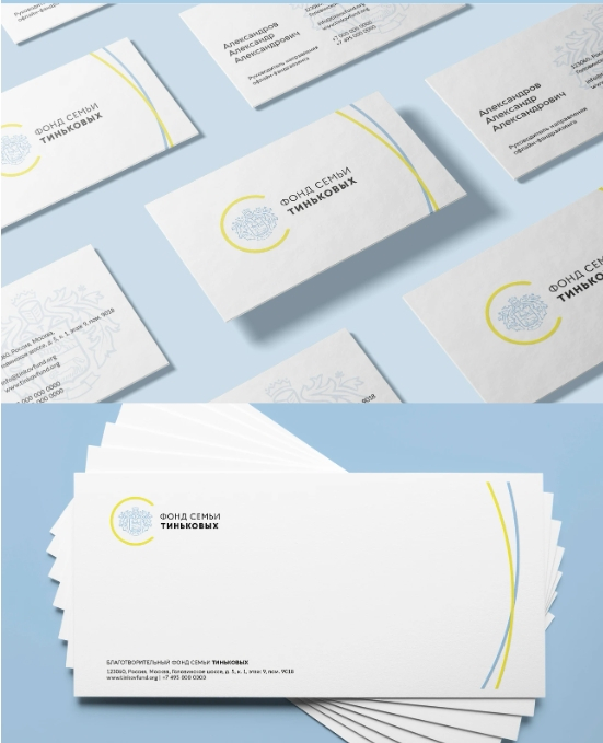 Основные элементы стилеобразующей графики Фонда – соприкасающиеся окружности желтого и светло-голубого цвета — передают связь двух человек: пациента и донора, жизни которых пересеклись в самый важный для них момент. Лаконичные линии, будто тонкие нити, аккуратно и ненавязчиво пронизывают ключевой идеей все базовые носители фирменного стиля: бланки, конверты, визитки, благодарственные письма и шаблоны презентации.