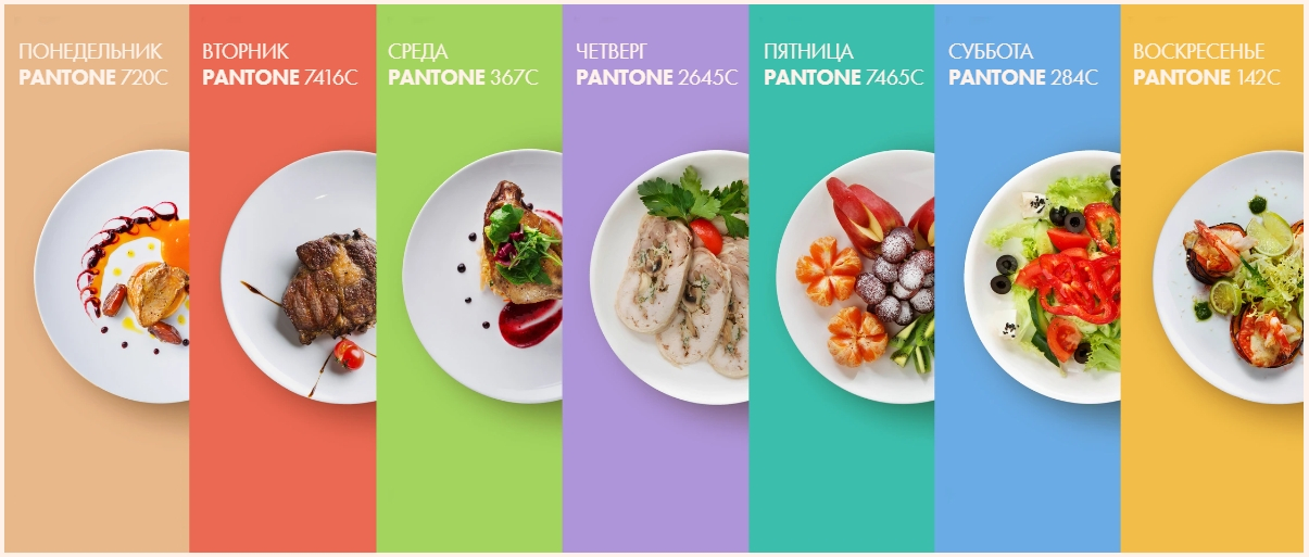 Окрас этикеток был выбран не случайно. Мы обратились к этимологии цвета и определили, что каждый день недели символизирует небесное тело, а вместе с тем и присущие ему тона и смыслы. Так, например, понедельник хранит в себе связь с Луной. Она представляет собой чистоту и невинность, поэтому спутнику соответствует нежно бежевый цвет и его оттенки. Вследствие этого на контейнеры с завтраком, обедом и ужином Eat2Fit каждый понедельник наклеены бежевые этикетки.