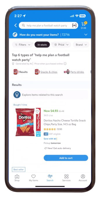Помимо этого Walmart объявил о запуске сразу четырёх ИИ-«суперагентов» — для покупателей (Sparky), для поставщиков и рекламодателей (Marty), для сотрудников и для разработчиков. Со Sparky покупатели могут подобрать товары для новой квартиры в нужном стиле и бюджете. Вся экосистема строится так, чтобы пользователи в будущем могли делать покупки и управлять сервисами Walmart не только внутри приложения, но и через внешние ассистенты (например, ChatGPT), которые напрямую общаются с Sparky. Руководители Walmart предсказывают, что с такими агентами традиционная поисковая строка уйдет в прошлое.