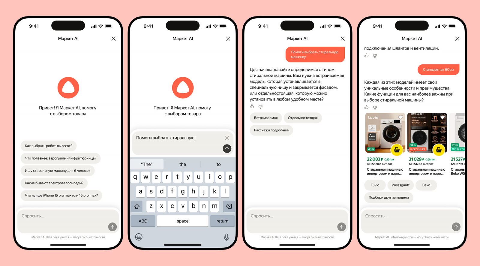 30 апреля 2024 года «Яндекс Маркет» представил чат-ассистента «Маркет AI», который работает на основе нейросети YandexGPT 5 Pro. С помощью ассистента покупатели могут подбирать и сравнивать товары, а также получать подробную информацию о них прямо в чате. Искусственный интеллект анализирует характеристики товаров, учитывает отзывы пользователей, сравнивает различные варианты и предлагает персональные рекомендации. В чате можно задать любые вопросы о товарах на маркетплейсе и уточнить свои предпочтения — например, спросить, из какого материала выбрать летнюю рубашку, чтобы в ней было комфортно в жару.