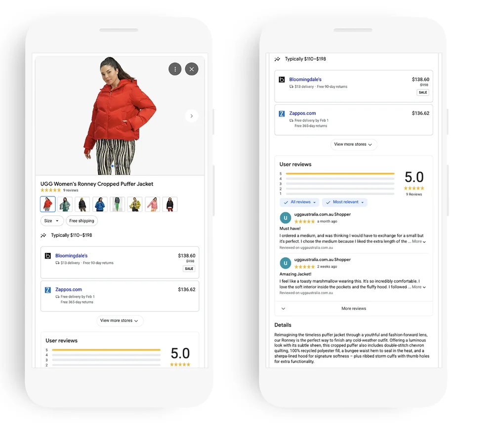 Одной из самых заметных инноваций в сфере поиска одежды с помощью искусственного интеллекта стала технология, реализованная Google. Пользователь вводит описание нужного товара в поисковую строку Google, после чего может воспользоваться разделом «Не можете найти? Создайте!»
