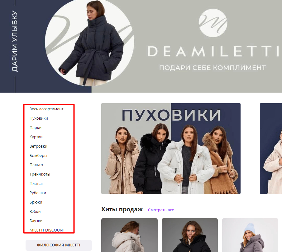 Например, вот ассортимент одного популярного магазина женской одежды на WB: