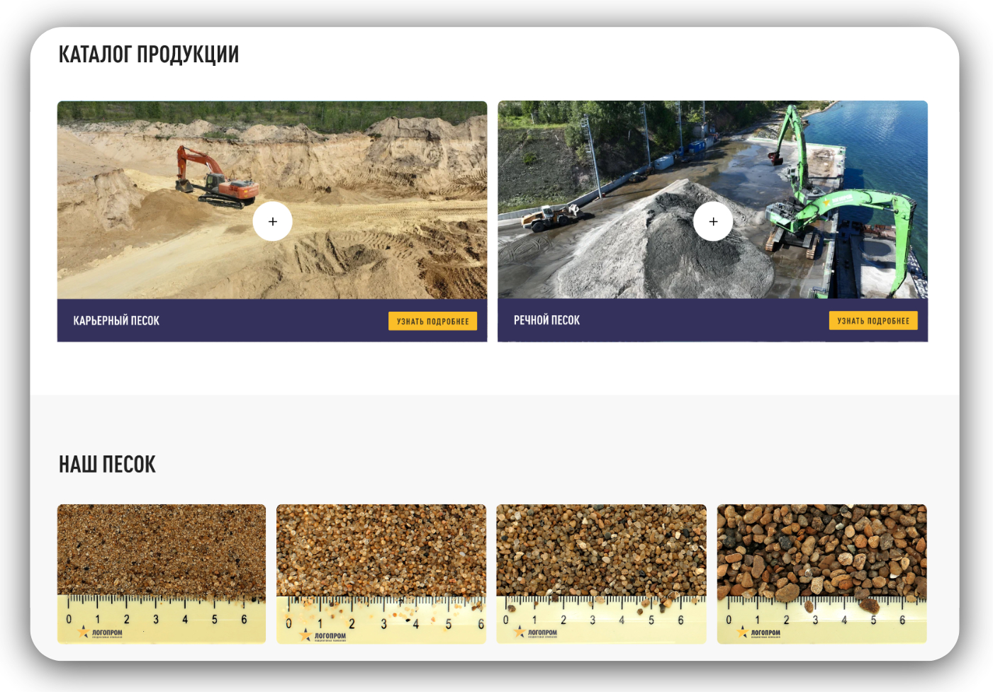Компания Логопром представляет собой крупный российский производственно-логистический холдинг.Новый лендинг направлен на услуги поставки речного и карьерного песка по Нижегородской области и ближайшим районам.