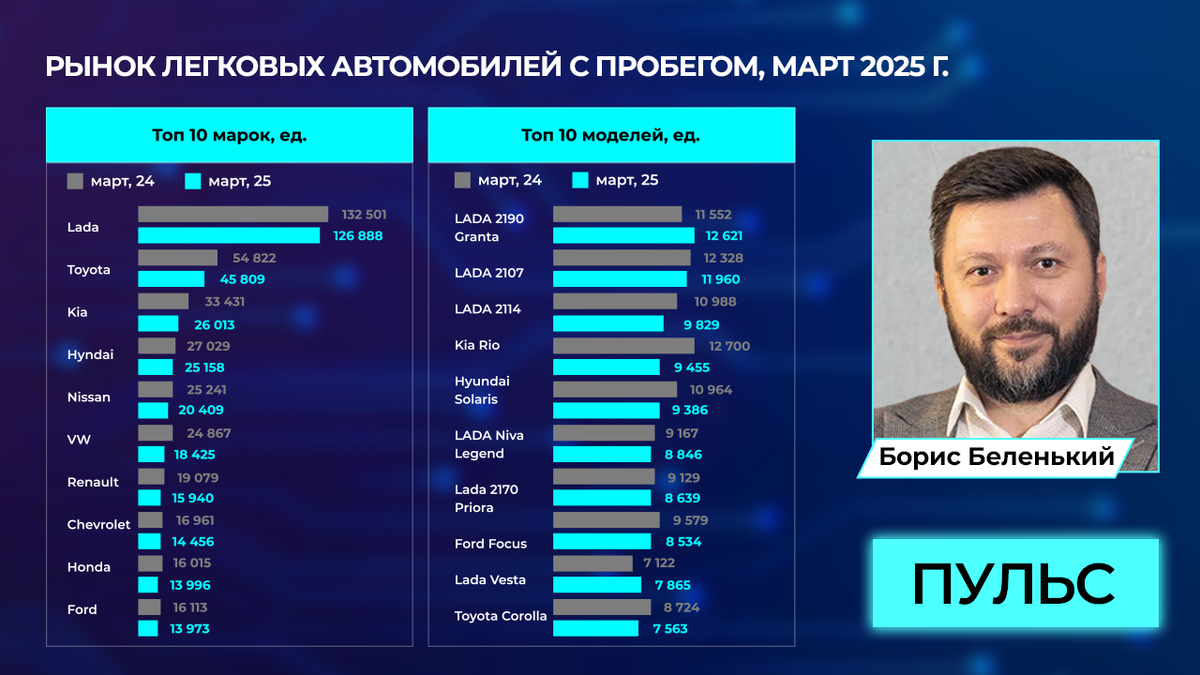 10 апреля состоялся традиционный выпуск аналитического эфира «Пульс», организованного профессиональным сообществом «Автомаркетолог». Ведущими трансляции традиционно выступили Татьяна Акимова, генеральный директор «Автомаркетолога», и Борис Беленький, CVO CARCRAFT GROUP. Главной темой эфира стало обсуждение результатов авторынка в марте и возможный разворот текущих рыночных тенденций.