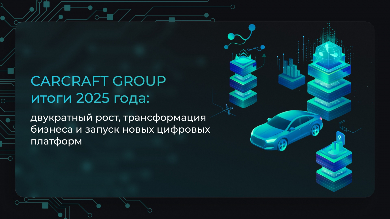 По итогам 2025 года CARCRAFT GROUP сформировала масштабируемую модель бизнеса, сочетающую технологичность, диверсификацию продуктов и устойчивый финансовый рост. Реализованные изменения, усиление команды и запуск новых платформ создают прочную основу для дальнейшей экспансии и укрепляют позиции компании как одного из ключевых игроков на стыке финансового и автомобильного рынков.CARCRAFT — лучшая в России мультибанковская онлайн-платформа финансирования автомобильного бизнеса по результатам исследования Автостат. Ведёт свою деятельность с 2016 года, имеет базу более 500 российских авторитейлеров, включая ТОП-10 крупнейших игроков рынка, сотрудничает с ведущими российскими банками. Ежемесячный объём финансовых операций превышает 10 млрд руб. Компания является победителем конкурса «IT-Революция в автобизнесе» (2021–2025 гг.), официально включена в реестр российского ПО Минцифры и является участником инновационного центра «Сколково». Входит в рейтинг SMART500, как самая быстрорастущая fintech-компания и рейтинг Forbes в номинации «Лучший работодатель»