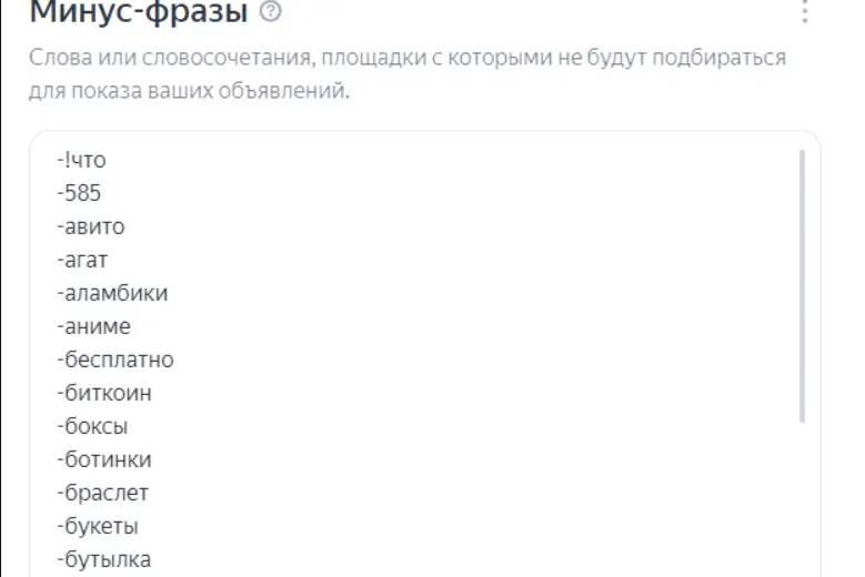 Яндекс Директ — это рекламная система с аукционом за рекламные места в поиске. В большинстве случаев, те, кто платит больше, занимают лучшие позиции в поисковой выдаче. Выбор дорогих высокочастотных запросов может привести к быстрому исчерпанию бюджета.