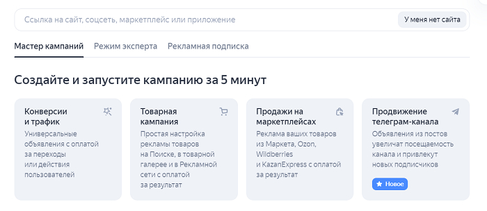 Летом 2023 года появился специальный тип компании — реклама телеграм-канала. Он доступен в Мастере компаний. Если вы хотите привлечь подписчиков в Телеграм, можете протестировать данный тип кампаний.