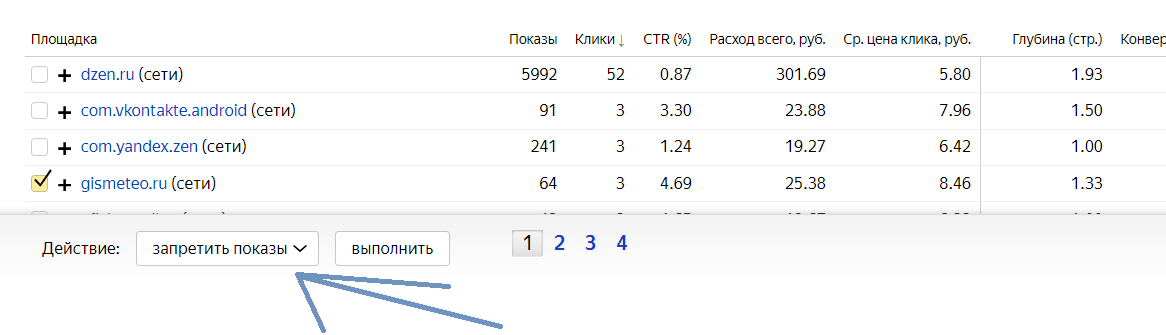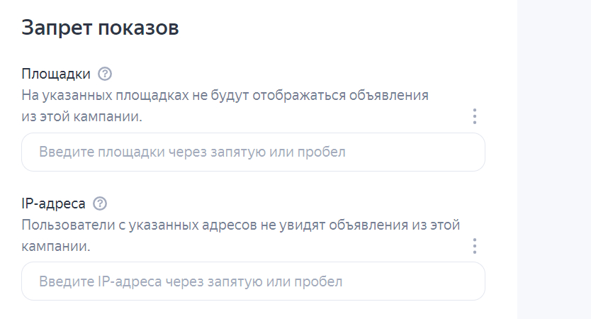 Далее посмотрите функцию запрета площадок, она нужна для фильтрации площадок в РСЯ. Чтобы исключить показы с некачественных площадок. В интернете много разных списков таких площадок, тут я публиковать их не буду.