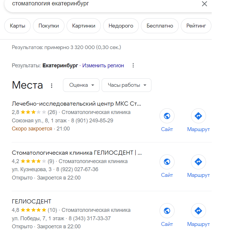 В нишах, где клиенты зачастую ищут товары или услуги в очень ограниченные сроки, так как спешат, продвижение на картах обычно очень выгодно. И если на Яндекс Картах можно купить приоритетные позиции, то на Google картах в России сейчас нет приоритетного размещения.