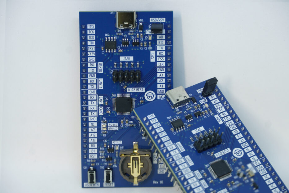 В них реализованы основные интерфейсы, такие как UART, SPI, I2C, а также 12-битные АЦП (четырехканальный у К1921ВГ5Т и восьмиканальный у К1921ВГ7Т), поддержка ШИМ и другие функциональные блоки, востребованные при построении устройств сбора данных и управления.