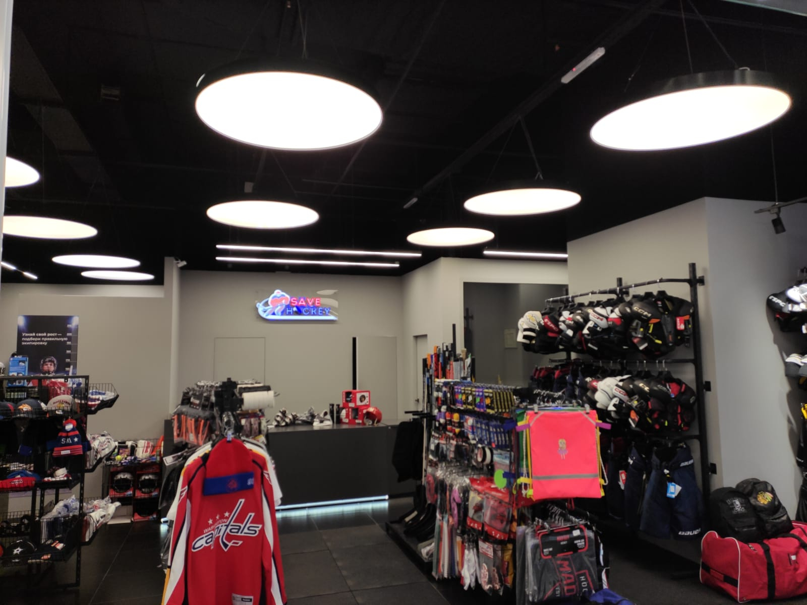 Чтобы не ошибиться при подборе освещения, мы рекомендуем ориентироваться на нормативные требования в СП 52.13330.2016 «Естественное и искусственное освещение». Для магазинов по продаже спортивных товаров речь идет об освещенности не меньше, чем 300 люкс. Но по нашему опыту, лучше все-таки выбирать даже большие значения: 500-700 люкс, особенно если есть мелкие товары.