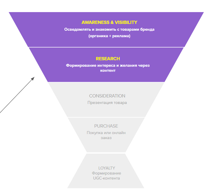 2) Со Stars Coffee мы работали на двух верхних этапах маркетинговой воронки.