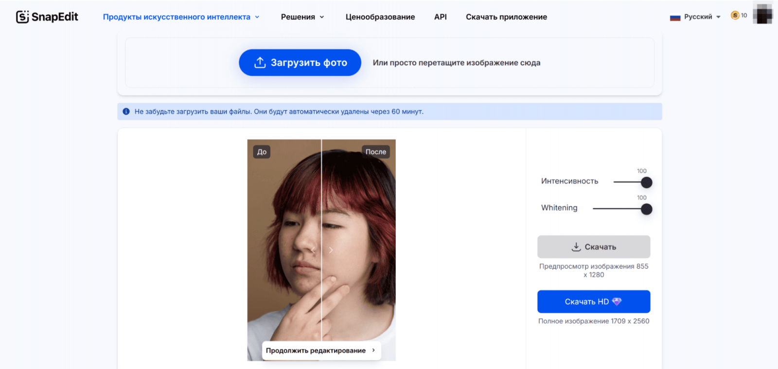 SnapEdit — онлайн фотошоп портретов. Если классическая обработка кожи в продвинутом софте может занять часы, то этот онлайн-редактор за пару мгновений выравнивает тон и убирает пигментацию. SnapEdit поможет улучшить внешний вид старинных кадров — убрать полоски, заполнить пространство с царапинами, раскрасить монохромные снимки.